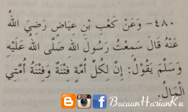 Saya mendengar Rasulullah s.a.w bersabda:“Sesungguhnya setiap umat ada fitnahnyadan fitnah umatku adalahharta”